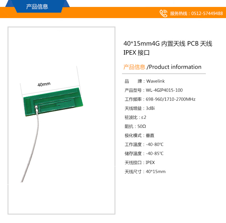天線尺寸:40*15mm