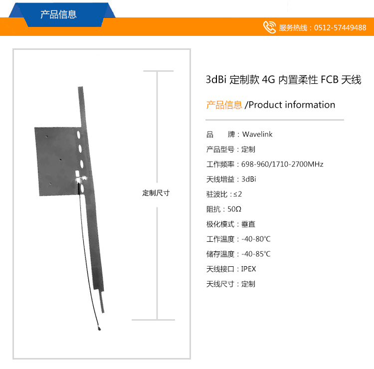 定制型 4G LTE 柔性低損耗內(nèi)置FCB天...