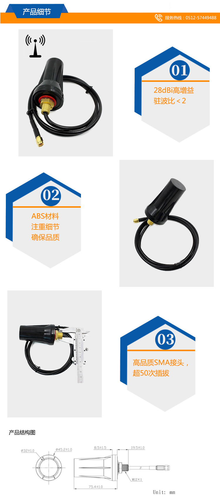 防水:防雨;特點(diǎn):固定壁裝;通孔安裝;天線安裝螺釘直徑:M12 11.76mm-11.95mm;電纜長度:3米;接頭:SMA公接頭;