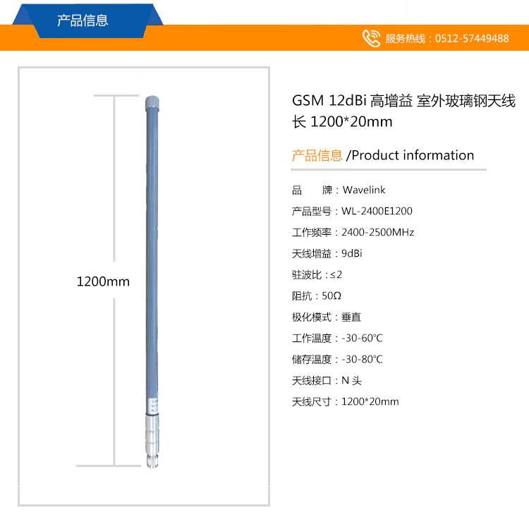 GSM 9dBi高增益 室外玻璃鋼天線 1200*20mm