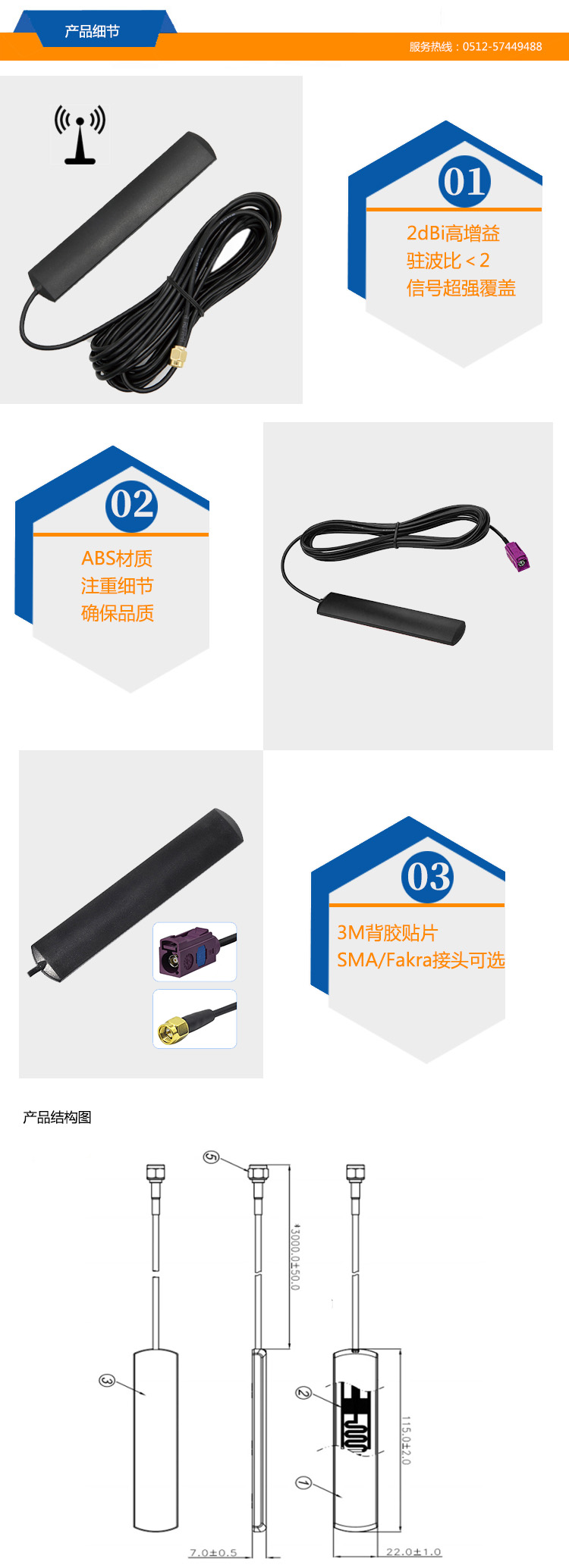 2、RG174線材 長度可定制 3、SMA/Fakra 接頭可選" />