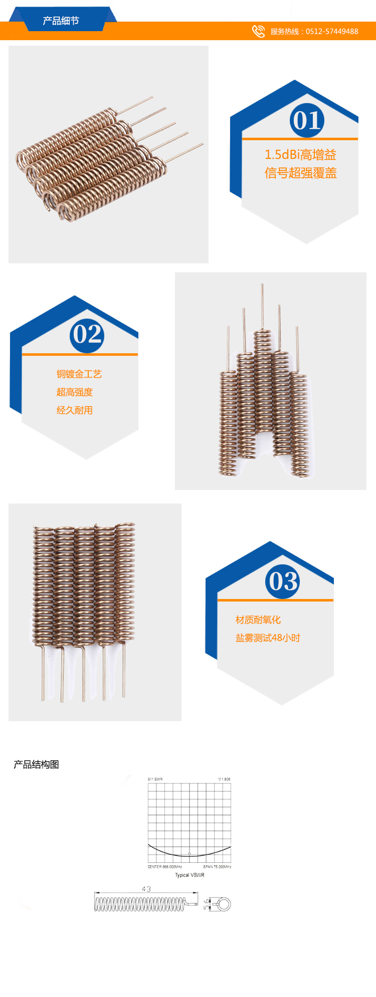 NB-IOT天線 433MHz 內(nèi)置鍍銅彈簧天線 長(zhǎng)43mm